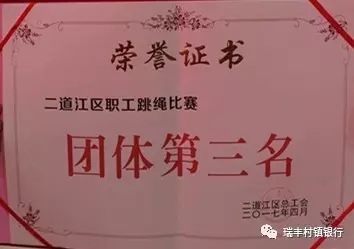 瑞豐村鎮(zhèn)銀行榮獲“二道江區(qū)職工跳繩比賽”團(tuán)體第三名!