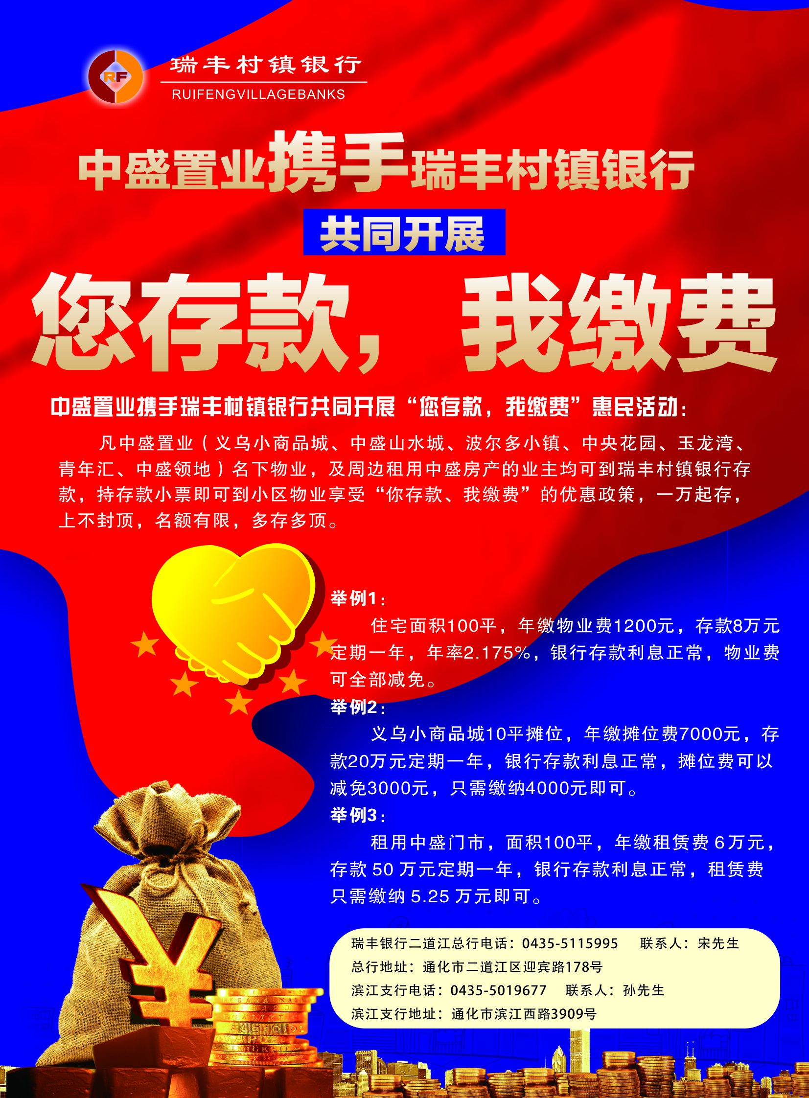 到瑞豐村鎮(zhèn)銀行辦理存款